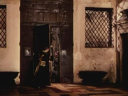 Кадры строятся симметрично, торжественно, с опорой на глубину перспективы.