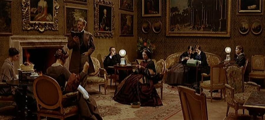«Одушевлённость» интерьеров и предметов — важный инструмент, с помощью которого Висконти делает прошлое живым, ощущаемым, даёт зрителю эмоциональное представление о том, как жили люди, как они воспринимали дом, уют, семейное пространство, быт.