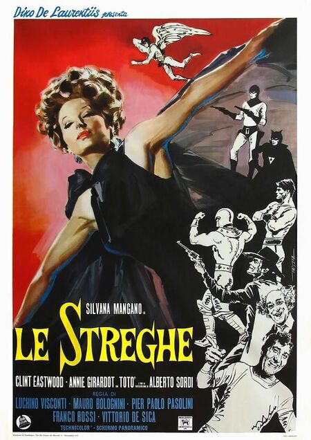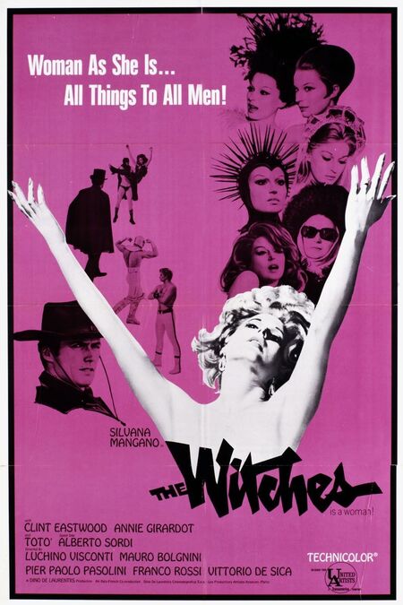 Плакат к фильму «Ведьмы» (1967) реж. Витторио Де Сика Пьер Паоло Пазолини Лукино Висконти Мауро Болоньини Франко Росси