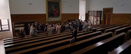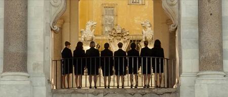 Соррентино активно использует симметрию, барочные ракурсы, замедленные движения, создавая ощущение визуального спектакля.