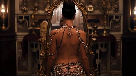 Насыщенные цвета подчёркивают тему избыточности. Палитра роскошная: золото, глубокие красные, сапфировые синие, тёплые охры, алебастровые белые. В ночных сценах: холодные синие и бирюзовые оттенки, контрастирующие с тёплой дневной палитрой.