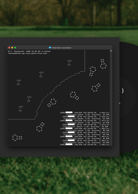 Концепт обложки виниловой пластинки и мини-айдентики к пьесе М. П. Мусоргского «Тюильрийский сад. Ссора детей после игры» из сюиты «Картинки с выставки».