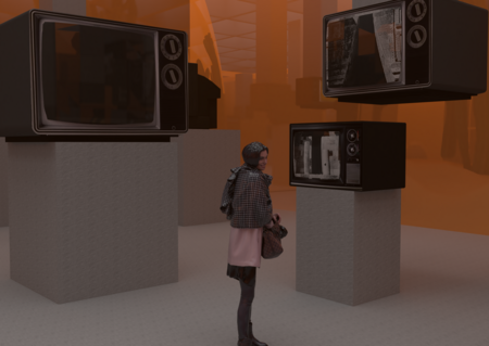 название: system error зритель заходит в здание Берлинской галереи, стеклянный коридор ведет его к квадратному пространству, которое отражает утопичный мир. он минималистичен, все идеально выстроено, квадратные и прямоугольные формы, стерильная чистота и линии. картины художника мигают в телевизорах-кубиках, на кубах рядом расписана краткая история создания.