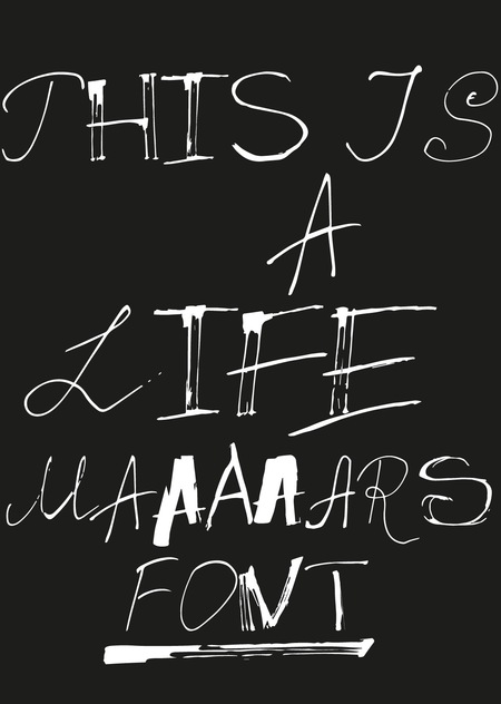 «LIFE ON MARS FONT» — шрифт со встроенной контекстной альтерацией, вдохновлённый творчеством группы Thirty Seconds to Mars Основной посыл, пропагандируемый группой для своих поклонников, — не бояться быть собой, быть разным, творить и дарить своё творчество миру. Это настроение и хотелось отразить с помощью шрифта. Довольно сложно увидеть картинку того, каким может быть шрифт у группы, которая может и в рок с кучей эффектов, и в лирику, поэтому первая проба появилась методом «рисования под музыку». Таким образом был пройден путь по всей дискографии, и в итоге это только усугубило, но в то же время и дало решение вопроса — поскольку отчётливо стала понятна необходимость вариабельности.
