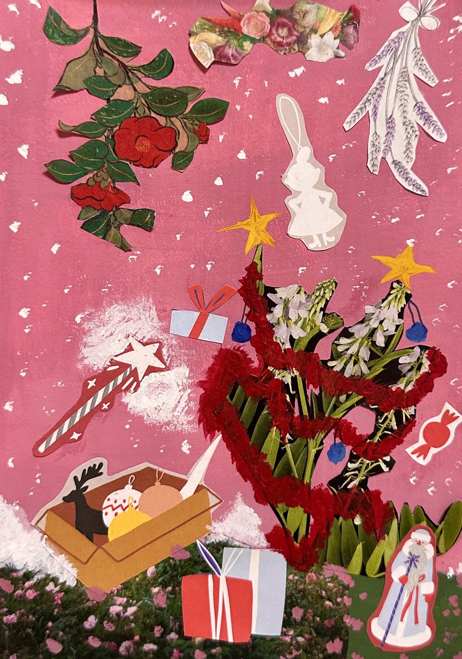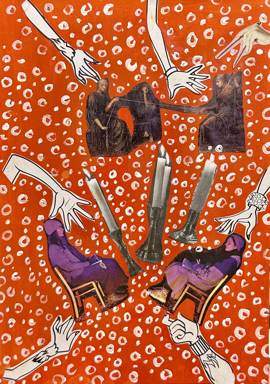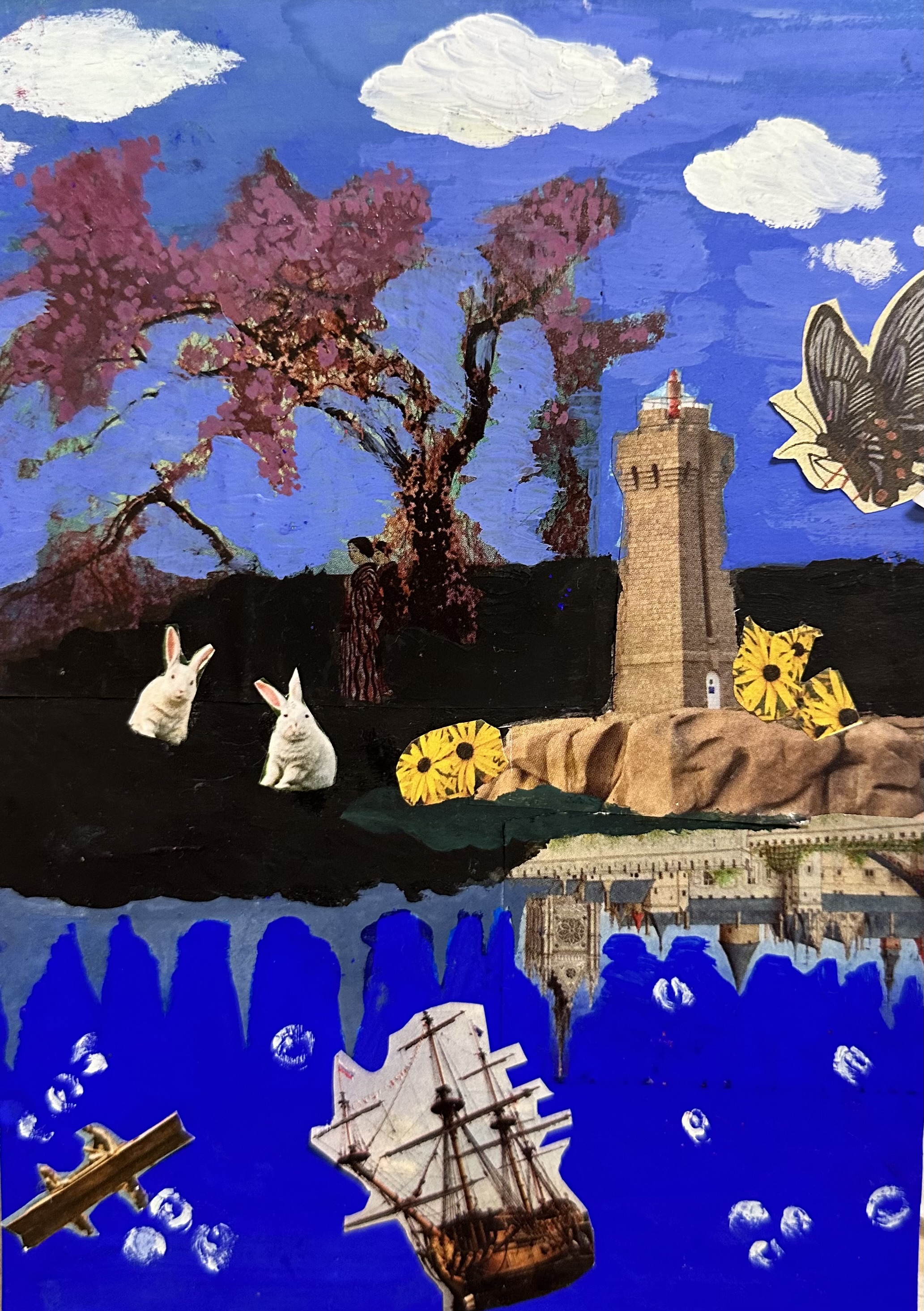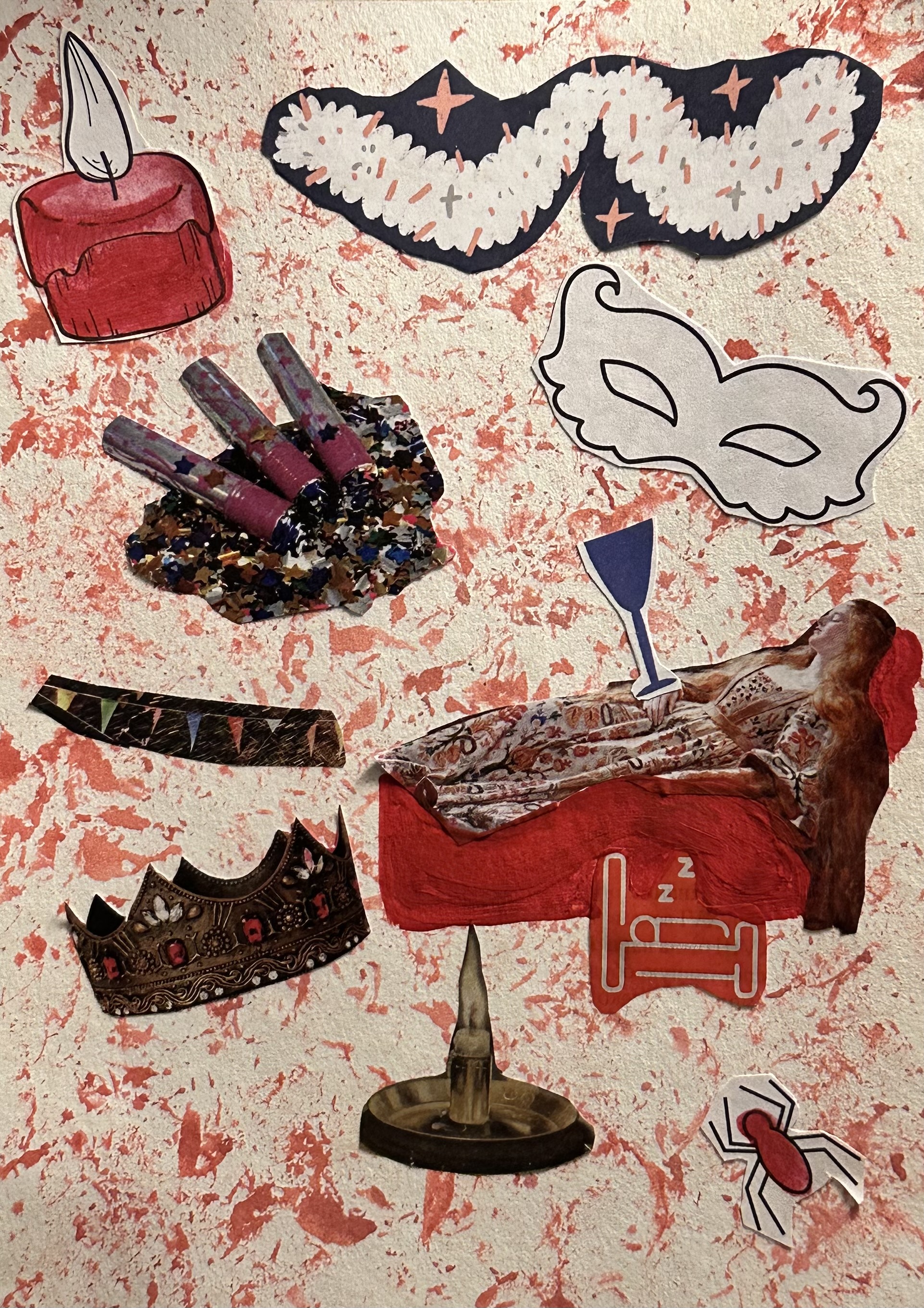 Дано: журналы, раскраски и газеты разных тематик и форматов. Нужно: найти самые яркие объекты, соединить их одной идеей, создав яркий и интересный коллаж. В работах я отобразила хаотичные сценарии снов. Никогда не предугадаешь сценарий снов так же, как и я не могла заранее представить как соединятся столь разные элементы в одной композиции