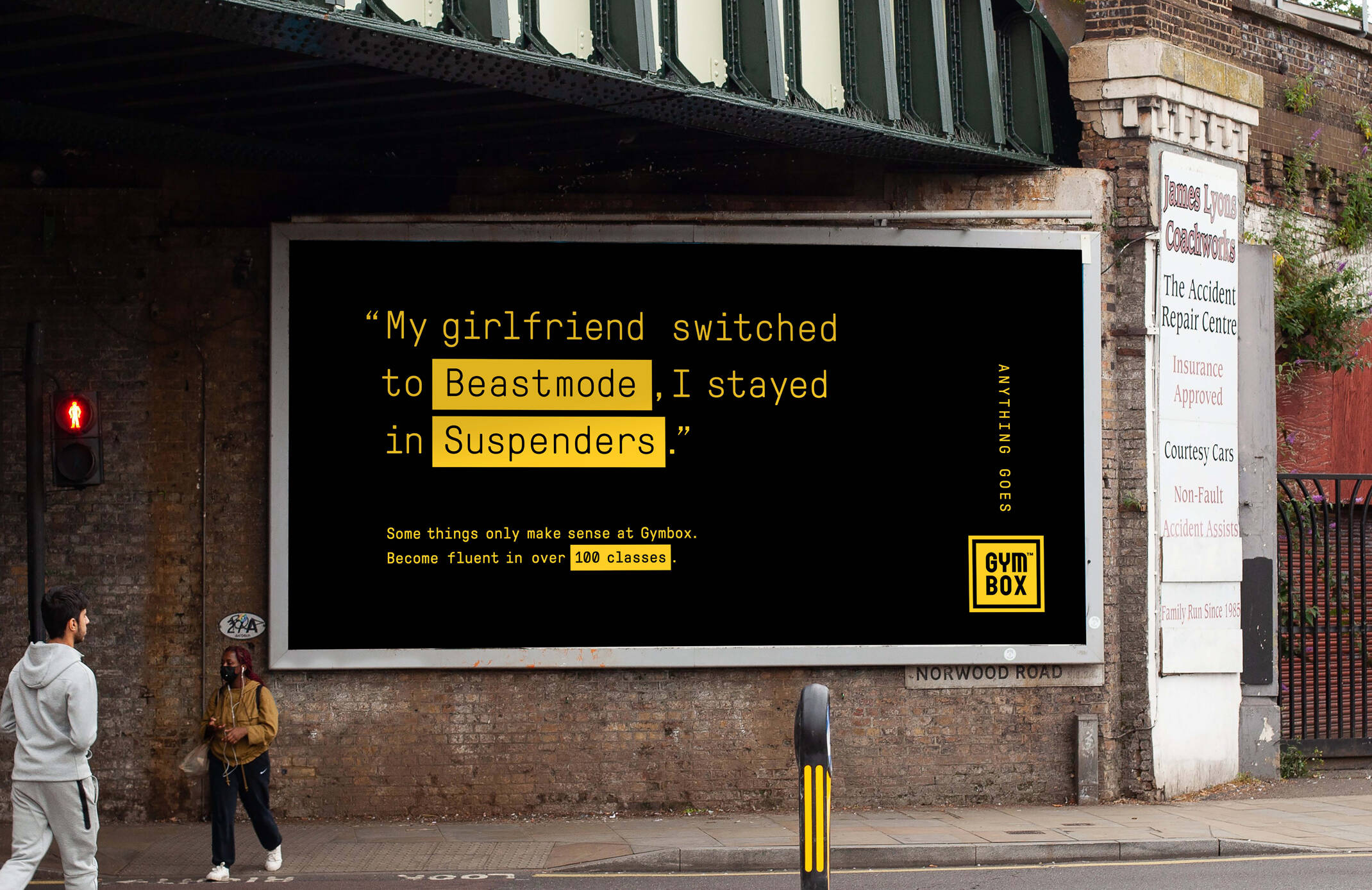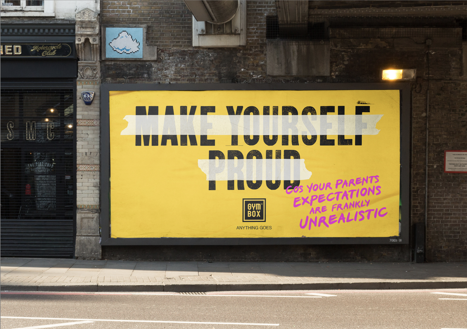 Рекламная кампания была разработана совместно с агентством AMV BBDO и цель их совместной работы заключалась в том, чтобы разрушить привычное представление о фитнесе и закрепить за Gymbox позицию «противоядия от скучных спортивных залов».