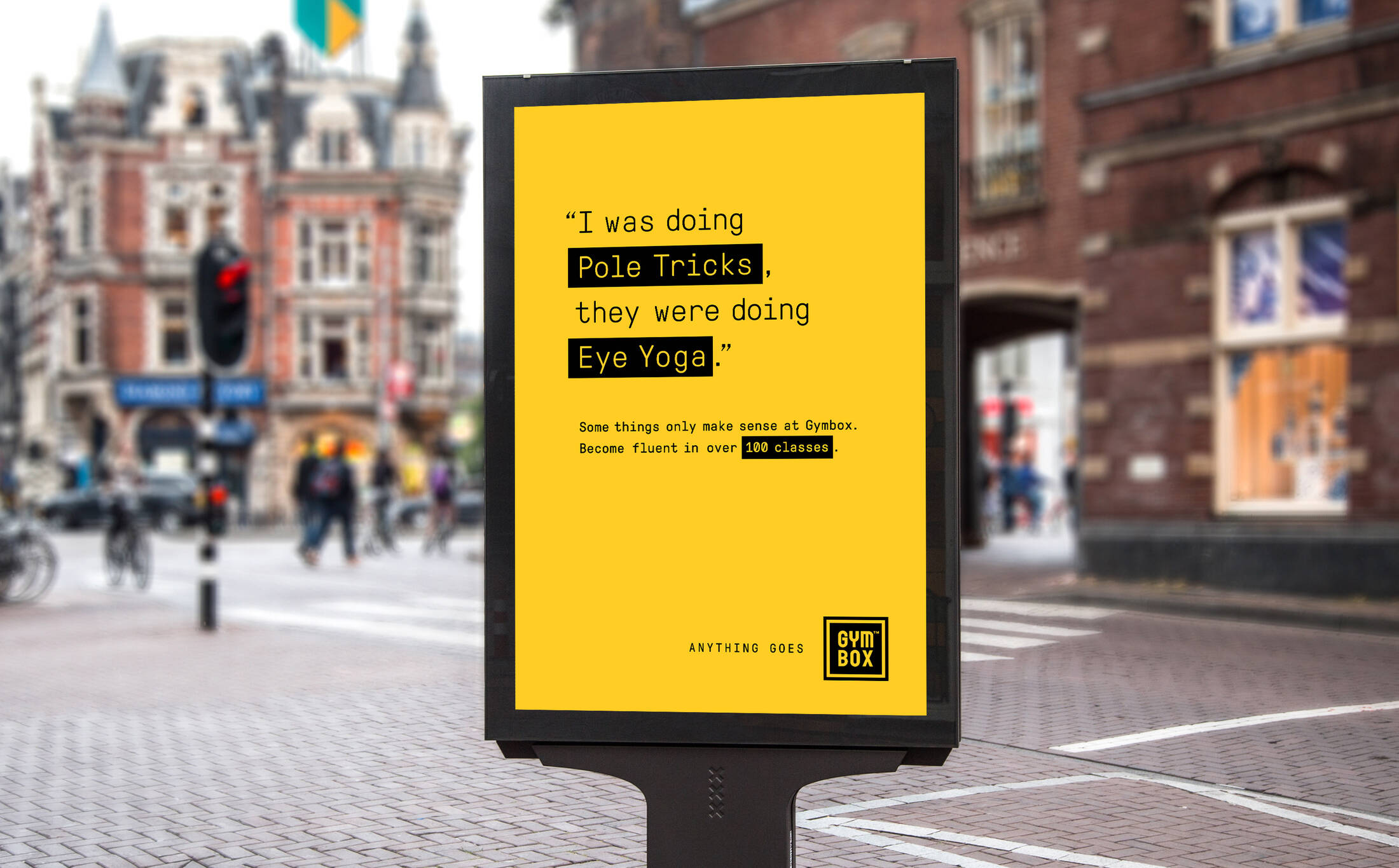 Основными цветами кампании были выбраны цвета бренда — желтый и черный, а также розовая фуксия, которая добавляет тот самый эффект бунтарства и нонконформизма, который заложен в ДНК Gymbox.