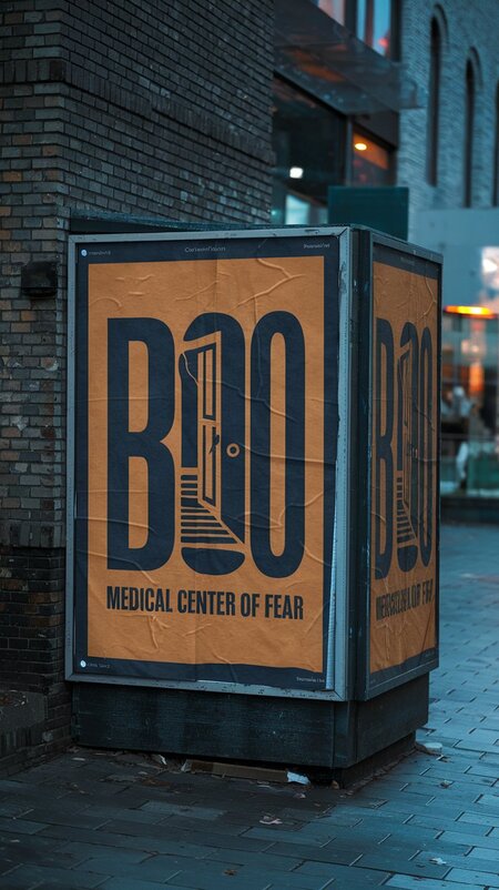 Используемые промпты: 1. Logo of Medical Center of Fear «Boo» with two o 2. Logo of Medical Center of Fear «Boo» with two o, an open door is inscribed in one of the letters o 3. business cards with logo of Medical Center of Fear «Boo» with two o, an open orange door is inscribed in one of the letters o, font Halis Rounded SC Medium, other letters are dark blue 4. posters with logo of Medical Center of Fear «Boo» with two o, an open orange door is inscribed in one of the letters o, font Halis Rounded SC Medium, other letters are dark blue, spooky scary 5. posters with logo of Medical Center of Fear «Boo» with two o, an open orange door is inscribed in one of the letters o, other letters are dark blue, spooky scary on the street 6. A vibrant poster featuring the logo of the Medical Center of Fear, where the words «Medical Center of Fear» are emblazoned in a bold, modern font 7. A haunting poster featuring the logo of the Medical Center of Fear, where the words «Boo» are emblazoned in bold, dark blue font 8. office of Medical Center of Fear «Boo» with two o, an open orange door is inscribed in one of the letters o, font Halis Rounded SC Medium, other letters are dark blue