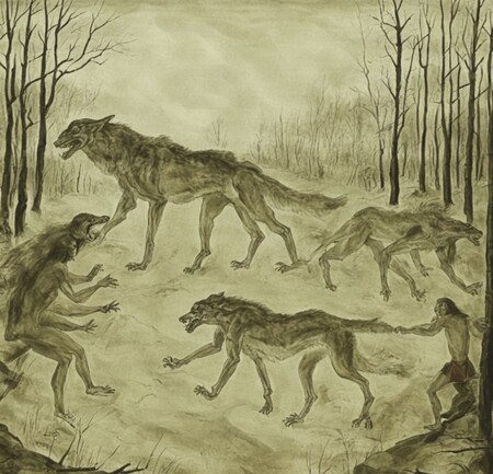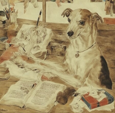 промпт: 1 — a painting of dog is reading a book, 2 — a painting of skinwalker
