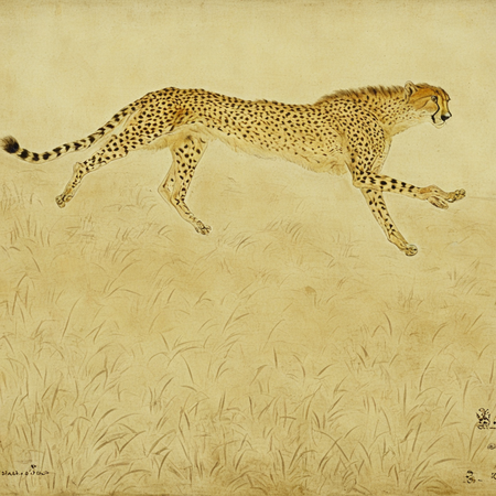 промпт: 1 — a painting of a cat laying on a bed, 2 — a painting of cheetah runs