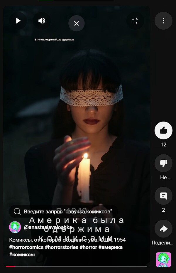 Активно применять релевантные хештеги в заголовке (до 5 штук) по трендам: horrorcomics, хоррор, ретрокомиксы — это даёт +14% просмотров.