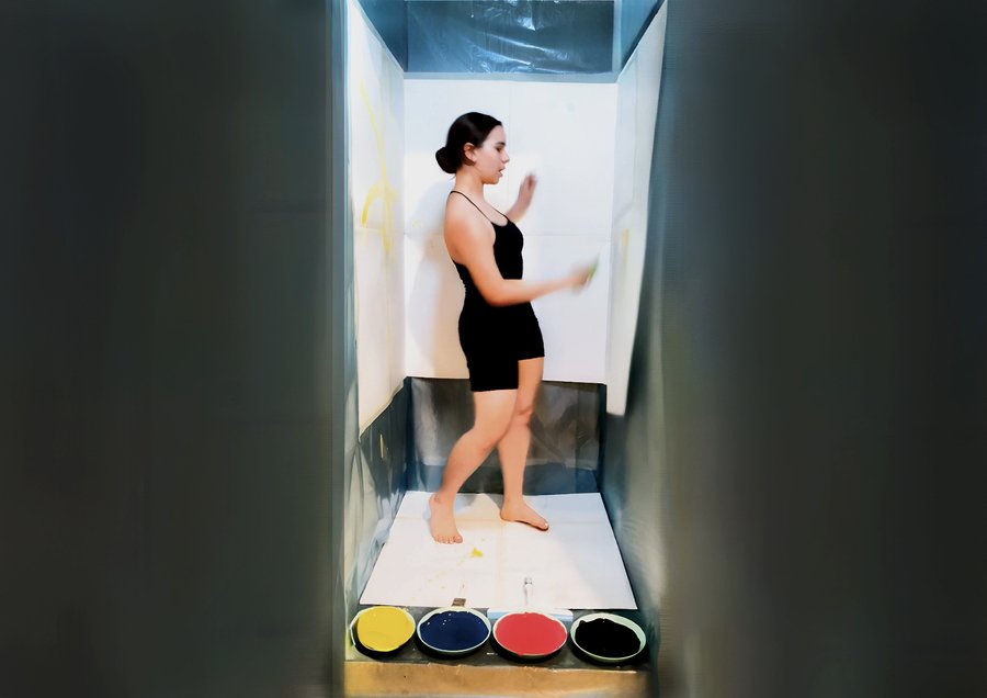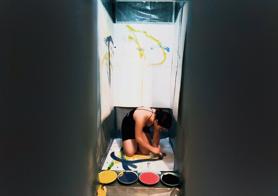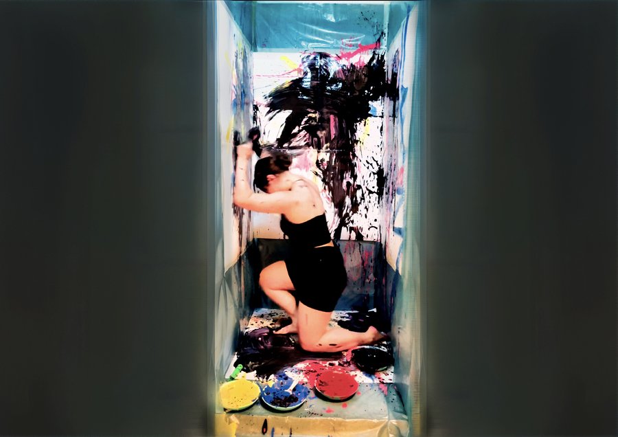 Перформанс исследует трансформацию внутреннего состояния человека через спонтанный, физически вовлеченный процесс рисования