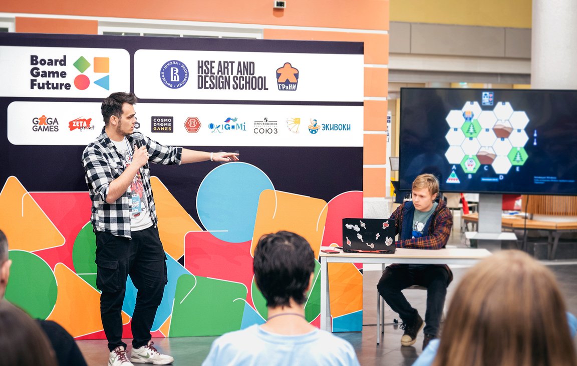 Настольные игры могут объединить людей совершенно разных возрастов, профессий и интересов за одним столом — в весёлом путешествии или напряжённом соперничестве. Графика разработана с учётом уже существующего логотипа — в ней передана идея универсальности, соединения и разнообразия.