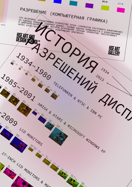 Изменения показаны в рекурсии на четырех прозрачных плакатах, которые при складывании создают единое изображение (каждому периоду выделен отдельный плакат). Изображения Микки-Мауса также показаны в динамике времени выхода мультсериала как иллюстрации изменения разрешений.