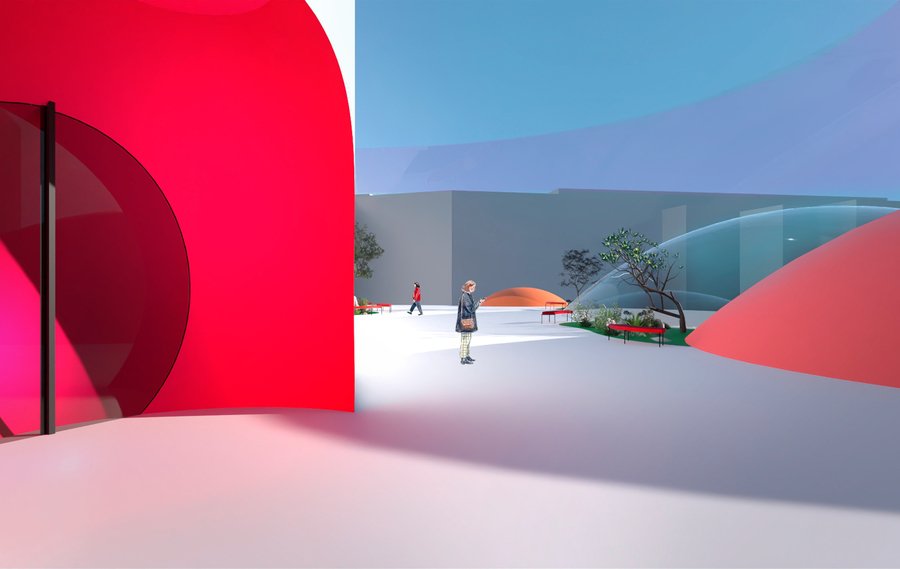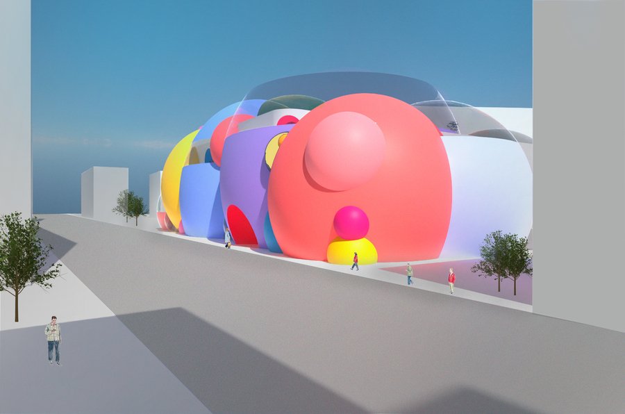 Концепция архитектурного фасада для выставки Робера Делоне основана на прозрачных капсульных структурах, напоминающих мыльные пузыри. Такой дизайн создает ощущение движения, легкости и взаимодействия света, что отражает ключевые принципы творчества художника.