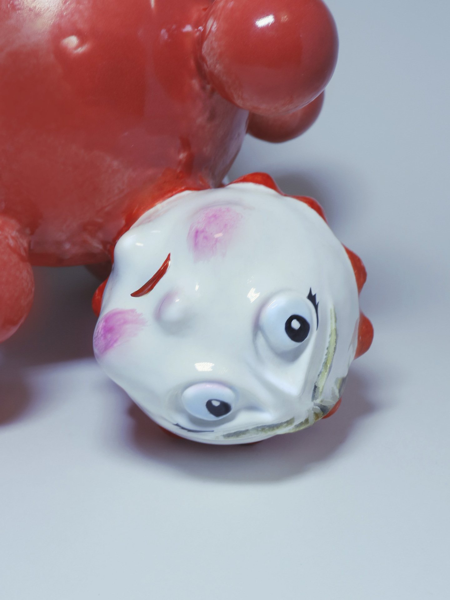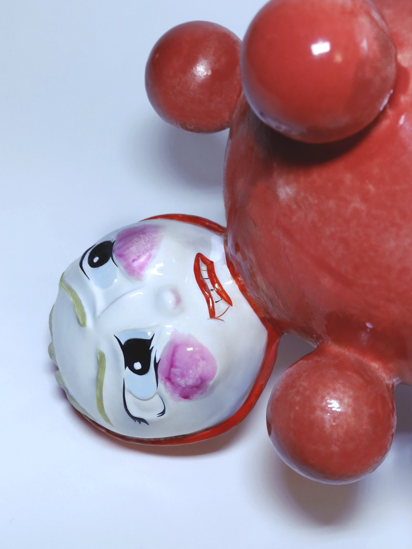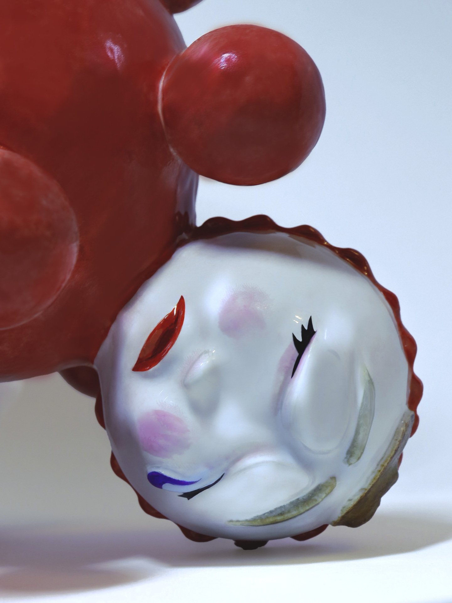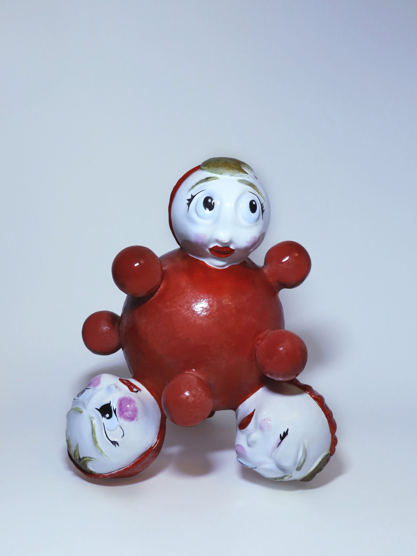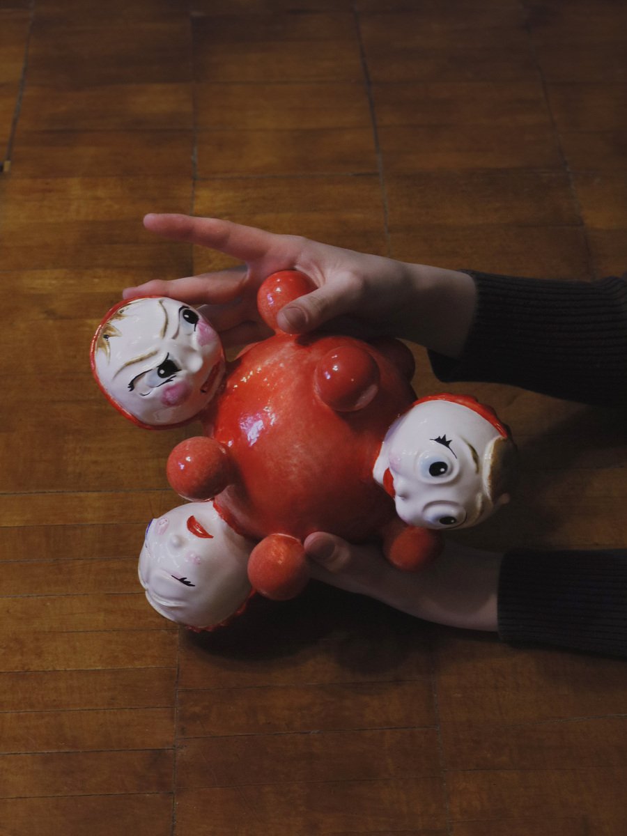 Неваляшка — это игрушка, которая была практически у каждого ребенка поколения «зет». Ее яркий красный цвет и простая безопасная форма не только привлекали детей, но и помогали их развитию. Однако у более молодых поколений неваляшка уже не так популярна — на смену ей пришли современные технологии. Проект (НЕ)ВАЛЯШКА — это своеобразная ретроспектива моих первых лет жизни, заключенная в образ одной игрушки. Четыре головы, в данном случае, символизируют четыре основные эмоции, которые может выражать младенец: радость, гнев, грусть и страх.