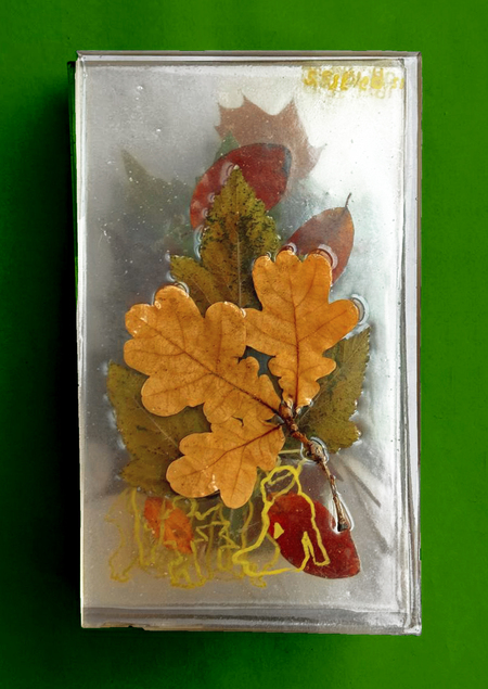 Даты нужны для нумеровки документов в архиве. Чтобы упорядочить иллюстрации, используется только одна известная информация о листах — дата, когда они упали на землю. Чтобы навечно сохранить их воспоминания, все листья залиты смолой, а сами образы прорисованы золотыми силуэтами.