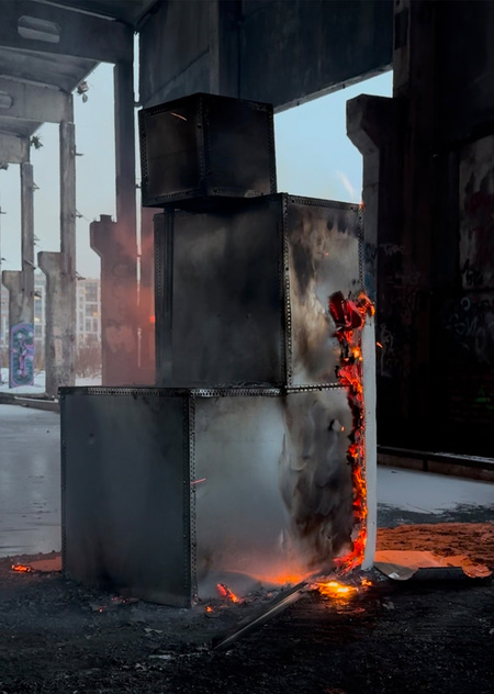 Символичное сжигание обобщенного образа искусства показывает, что будет, если люди забудут о нем: останется лишь «сухой» рабочий материал в пепле ушедшей духовности.