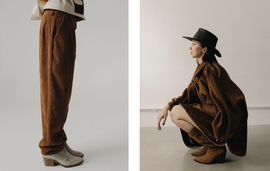 Первая коллекция посвящена исследованию и адаптации классического жанра вестерн, визуальные компоненты которого были взяты за основу в процессе разработки дизайна.