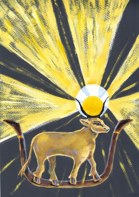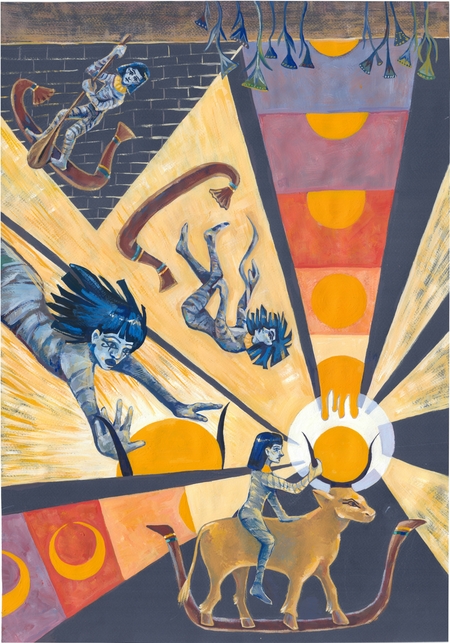 Оттолкнувшись от пирамиды на солнечной ладье, мумия случайно продолжила путешествие на спине Небесной коровы.