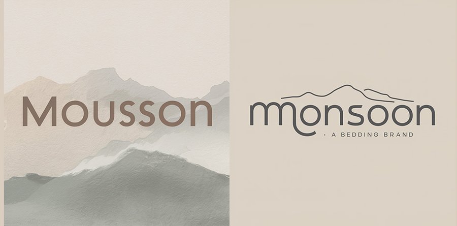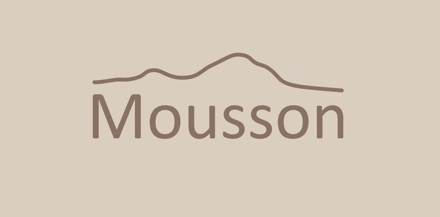 ideogram: Text logo for a brand called Mousson, natural aesthetics, vector drawing of mountains, minimalism, calm colors