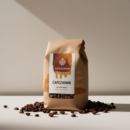 /imagine prompt for little coffee bean packaging: Generate coffee bean packaging from the Brazilian coffee brand «Cafezhinho» in a minimalist style and inspired by cave paintings. Neutral background that allows the subject to take center stage, with the packaging’s natural textures. A focus on the coffee beans themselves, scattered artfully around the packaging.