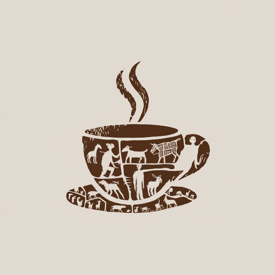 /imagine prompt for logo: Generate a logo for a coffee bean brand in a minimalist style inspired by cave paintings.
