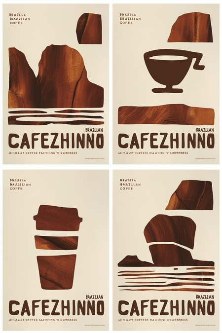 /imagine prompt for posters: Generate posters for a Brazilian coffee brand called «Cafezhinho», in a minimalist style inspired by cave paintings.