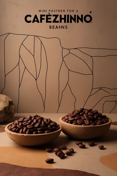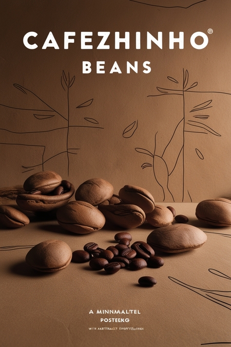 /imagine prompt for an advertising poster: Generate an advertising poster for the beans from the brand Cafezhinho. The poster is minimalist and inspired by cave paintings. A little abstract