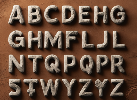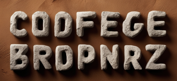 /image prompt for font: Generate a font for a Brazilian coffee brand. Fully English layout. Letters: A B C D E F G H I K L M N O P Q R S T V X Y Z. The font should look like a rock.