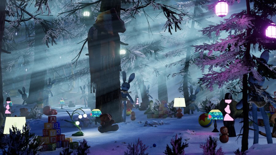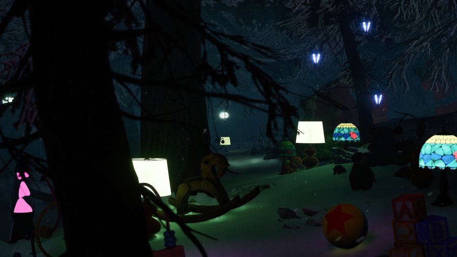 — авторская локация — холодный мистический лес, куда попадают все потерянные игрушки