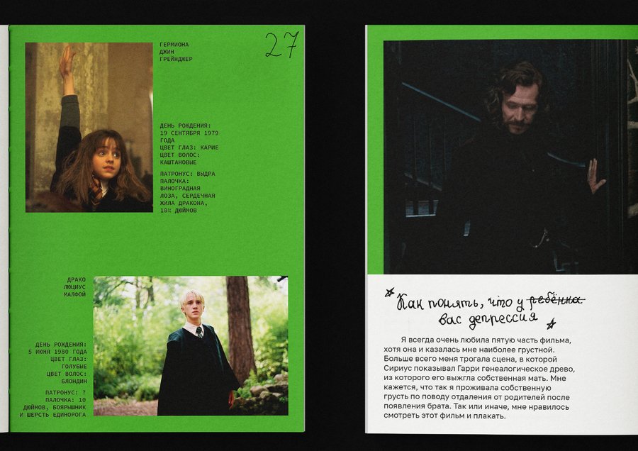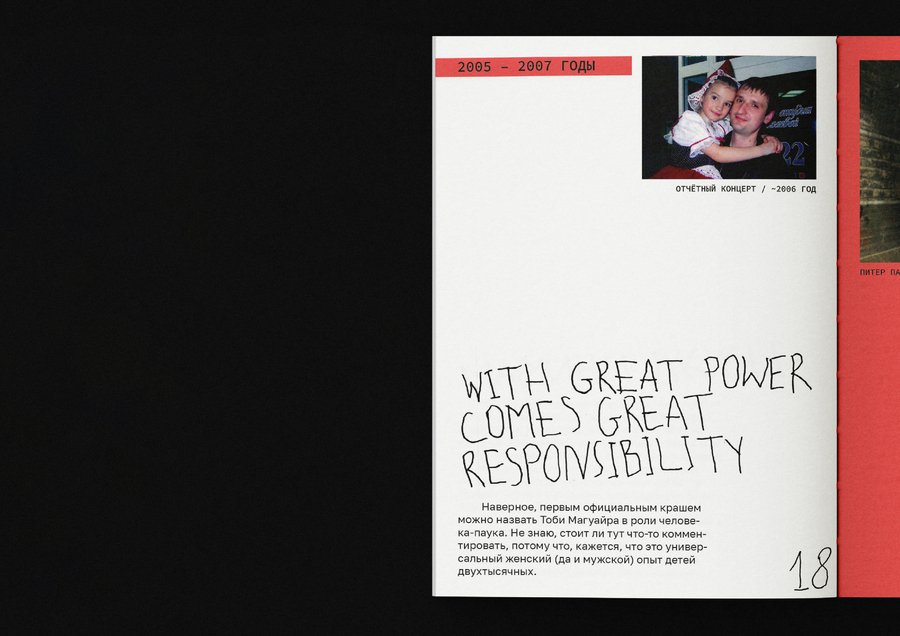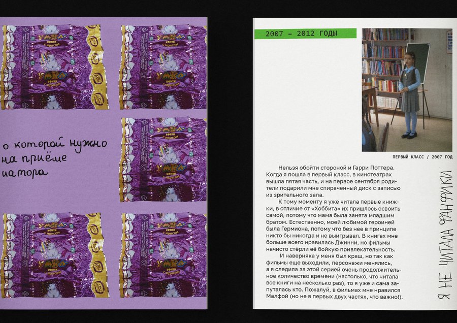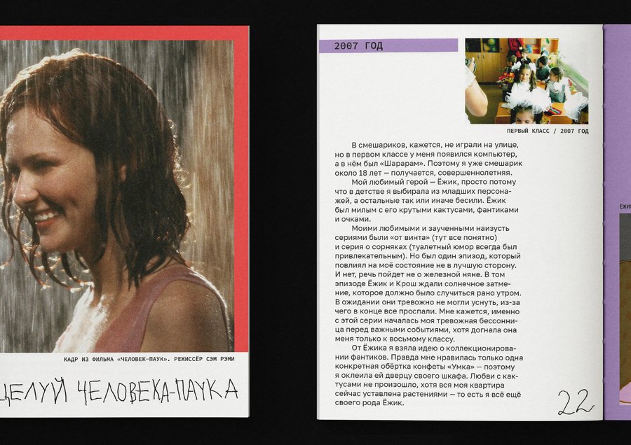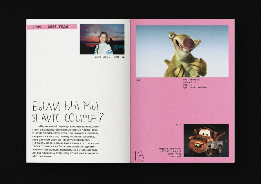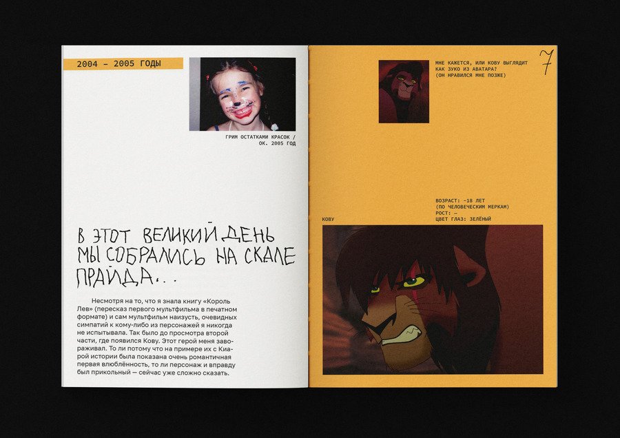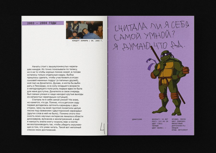 Слева на типовой разворот помещена информация обо мне и моем опыте, а справа о персонаже. За типовым разворотом идут страницы с дополнительными материалами по теме.