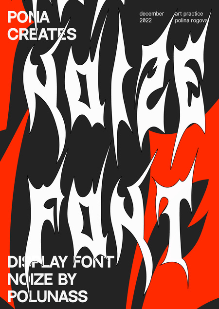 Noize — акцидентный панковский шрифт с большим контрастом и острыми штрихами, узкий, жирный и прямой.