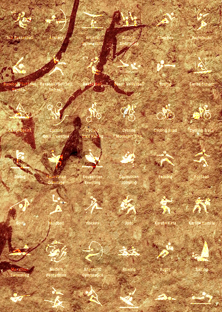 Сравнение наскальной живописи первобытных людей и пиктограмм Олимпийских игр.