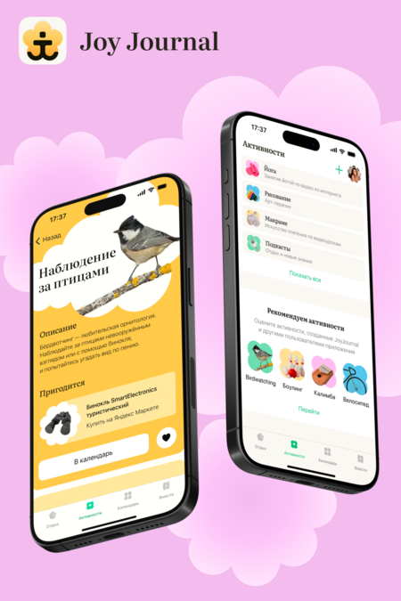 Далее я приступила к созданию пинов, всего их вышло 17, преобладающее большинство по одному проекту — мобильному приложению для планирования качественного отдыха Joy Journal.