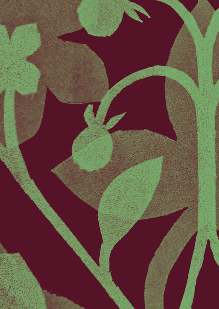Печатная серия, где пересечение растительных силуэтов создает сложные цветовые эффекты, превращая простые формы в замысловатые переплетения и рождая новые цветовые сочетания.