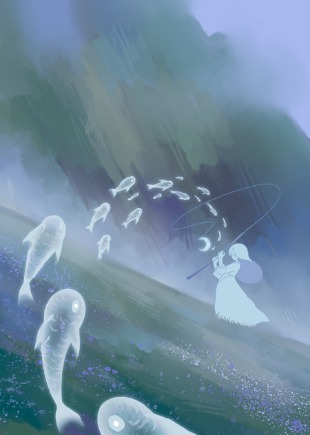 Вслед за рыбами появляется Рыбак, управляющий ими. Она забрасывает удочку и вылавливает рыб из овец. Для чего — известно лишь ей.