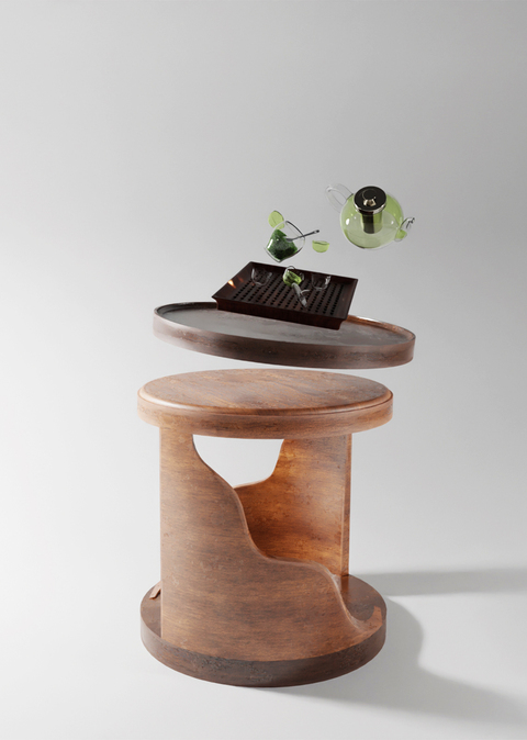 Дерево (материал объекта) часто символизирует время, поэтому формообразование столика было основано на песочных часах, которые подобно кольцам дерева наглядно и визуально отсчитывают время