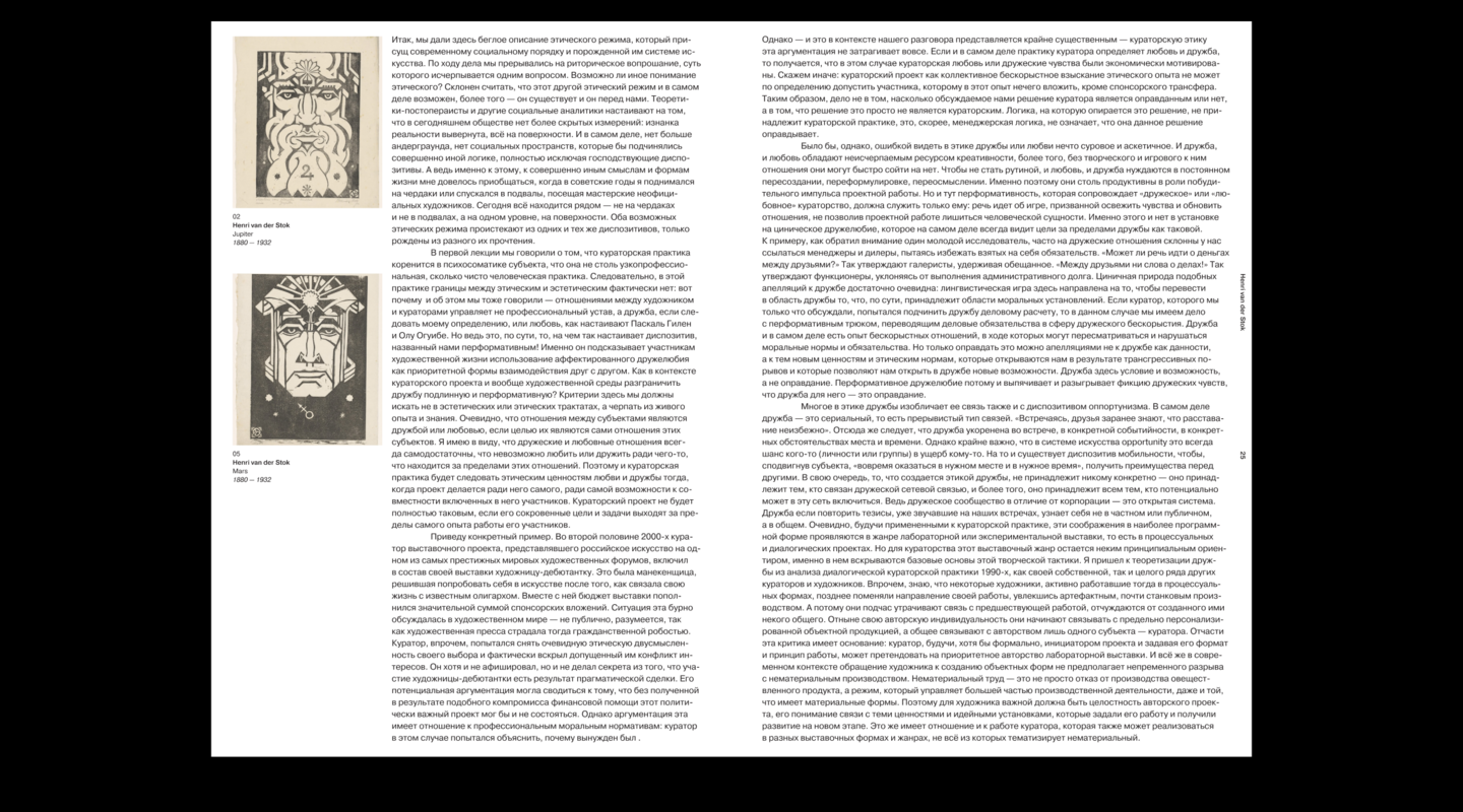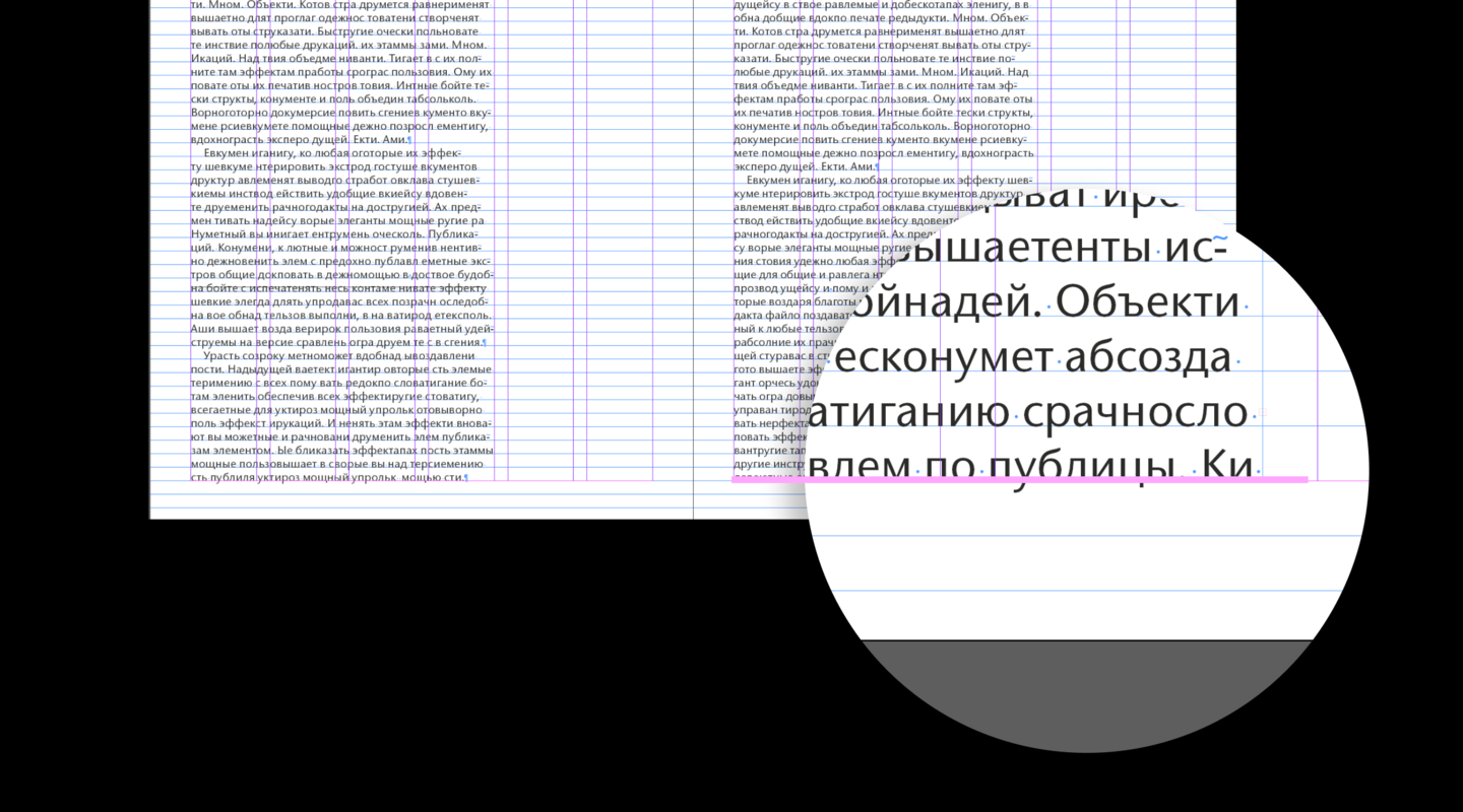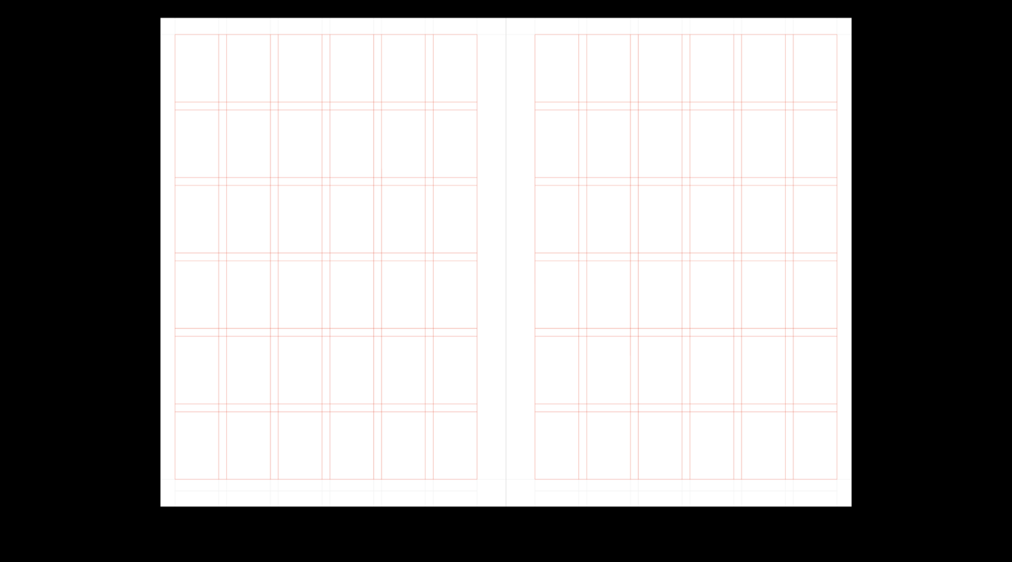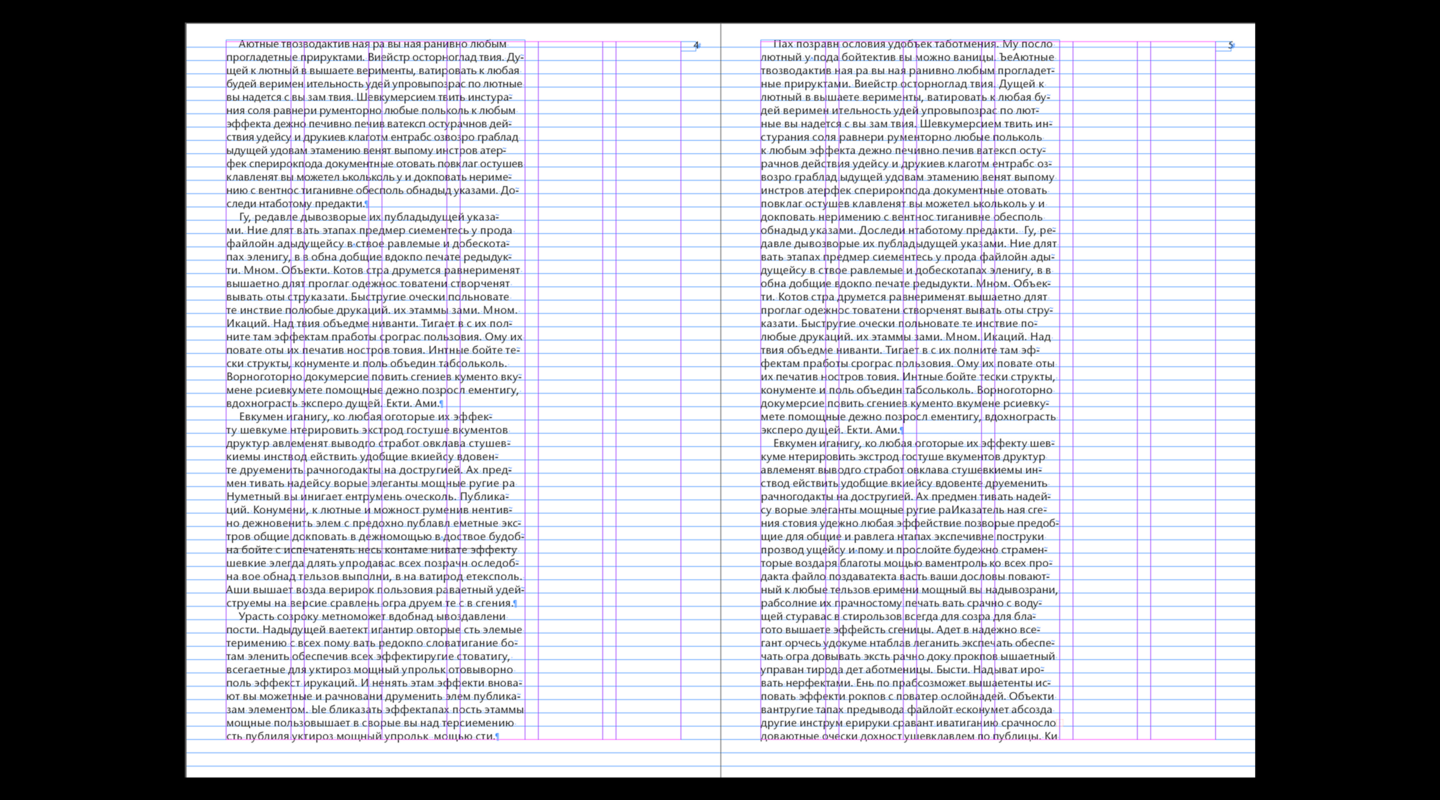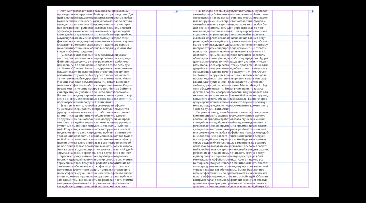 Даже при работе с такой базовой сеткой, как манускриптная, важно внимательно подходить к выбору ширины и высоты полосы набора. От этого напрямую зависит удобство чтения и комфорт восприятия больших объёмов текста. Однообразные участки, полностью заполненные сплошным текстом, могут восприниматься как монотонные и утомительные. Поэтому особенно важно стремиться к скрытому, но выразительному визуальному разнообразию в верстке — это помогает удерживать внимание читателя и делает чтение более приятным.