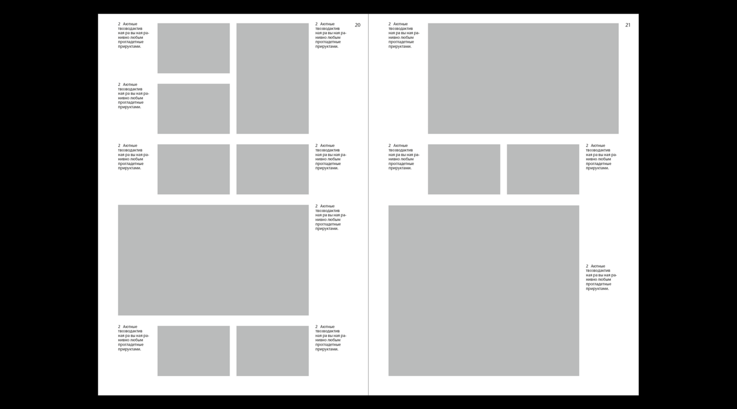 Используя модульную сетку, спроектировать серию типовых разворотов для каталога. Серия может строиться по логике: 1) спусковой, 2) рядовой, 3) каталожный разворот.