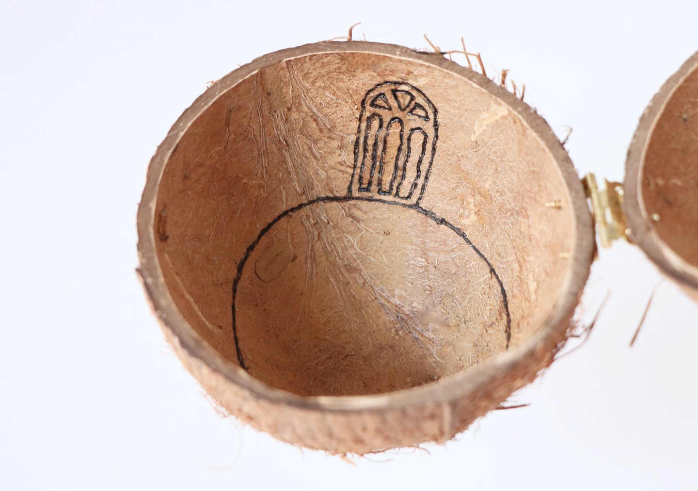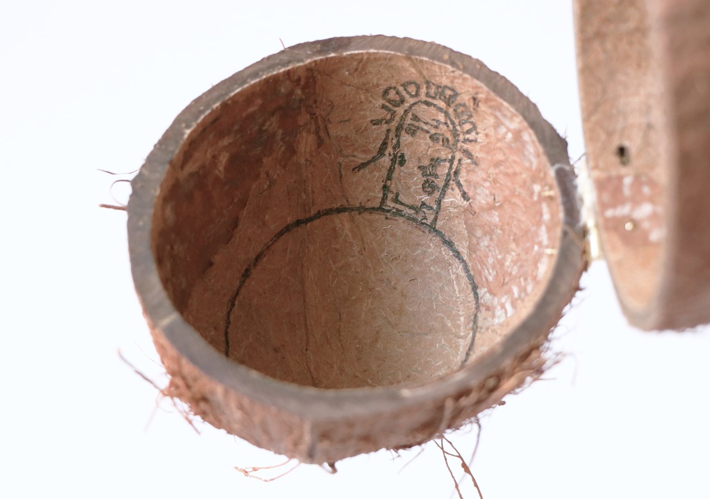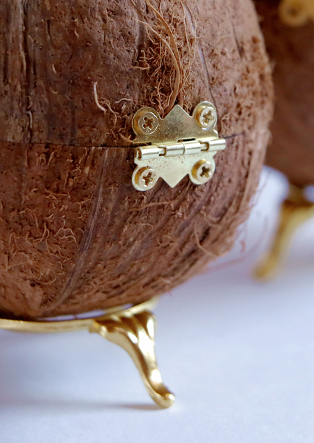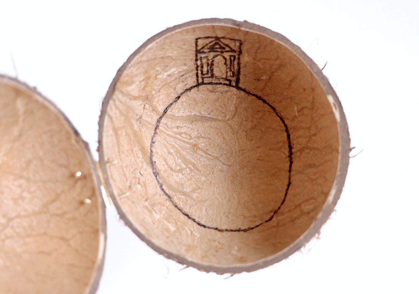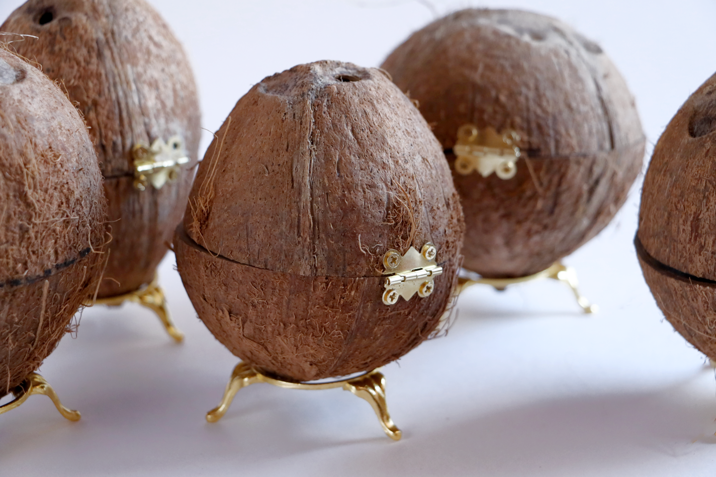 На питьевом кокосе было написано: «Открывать здесь». Вот только где это — здесь? Замешательство заставляет задуматься, действительно ли существует конкретное место, которое нужно открыть. Чтобы решить все вопросы, я решила, что нам просто нужна дверь. Внутри кокоса, да.