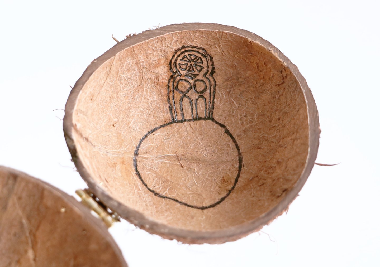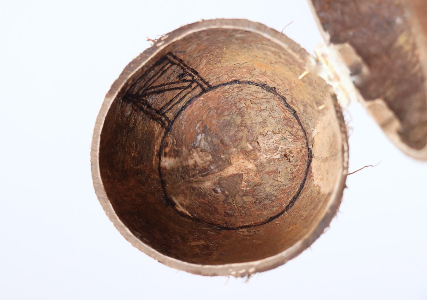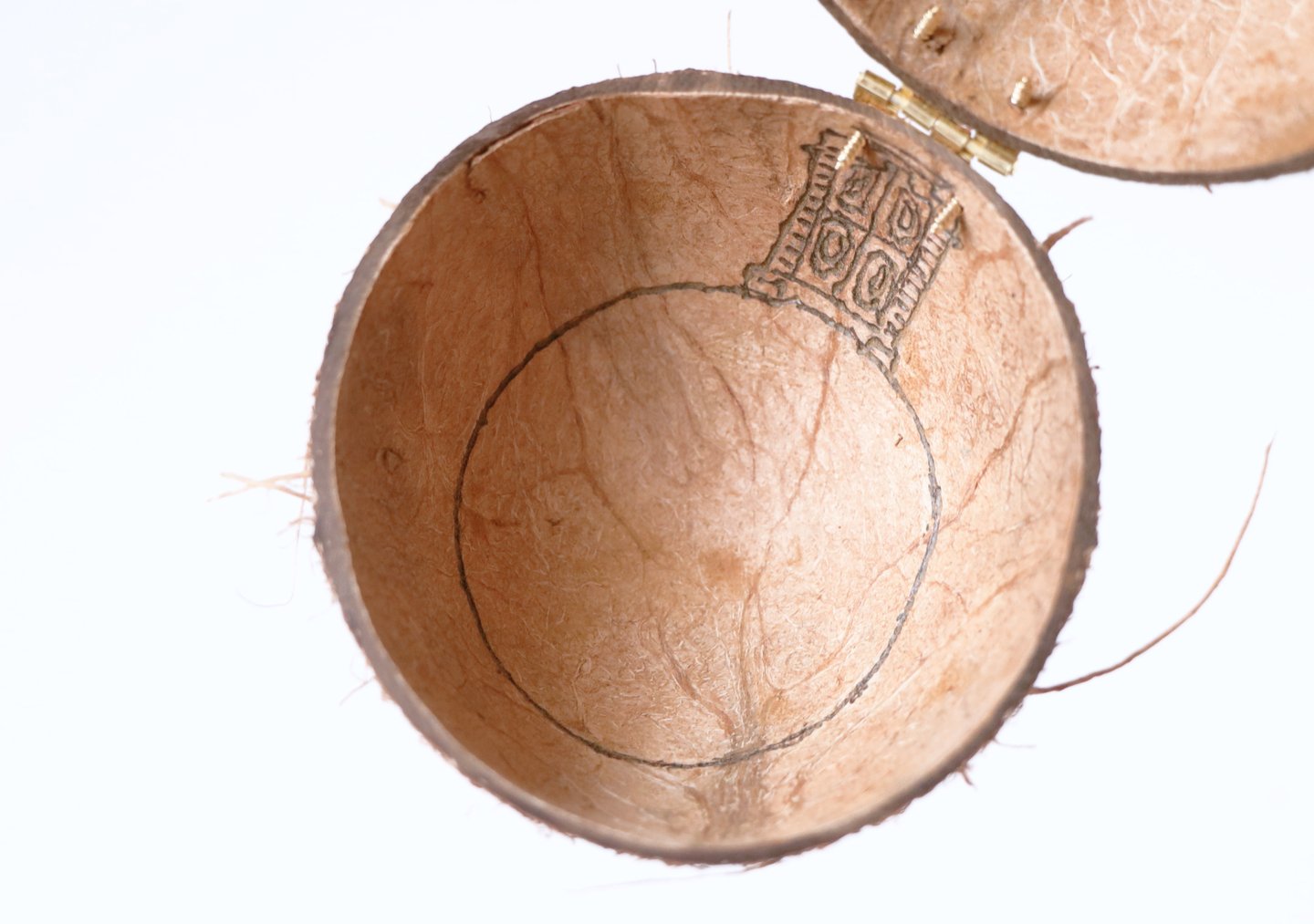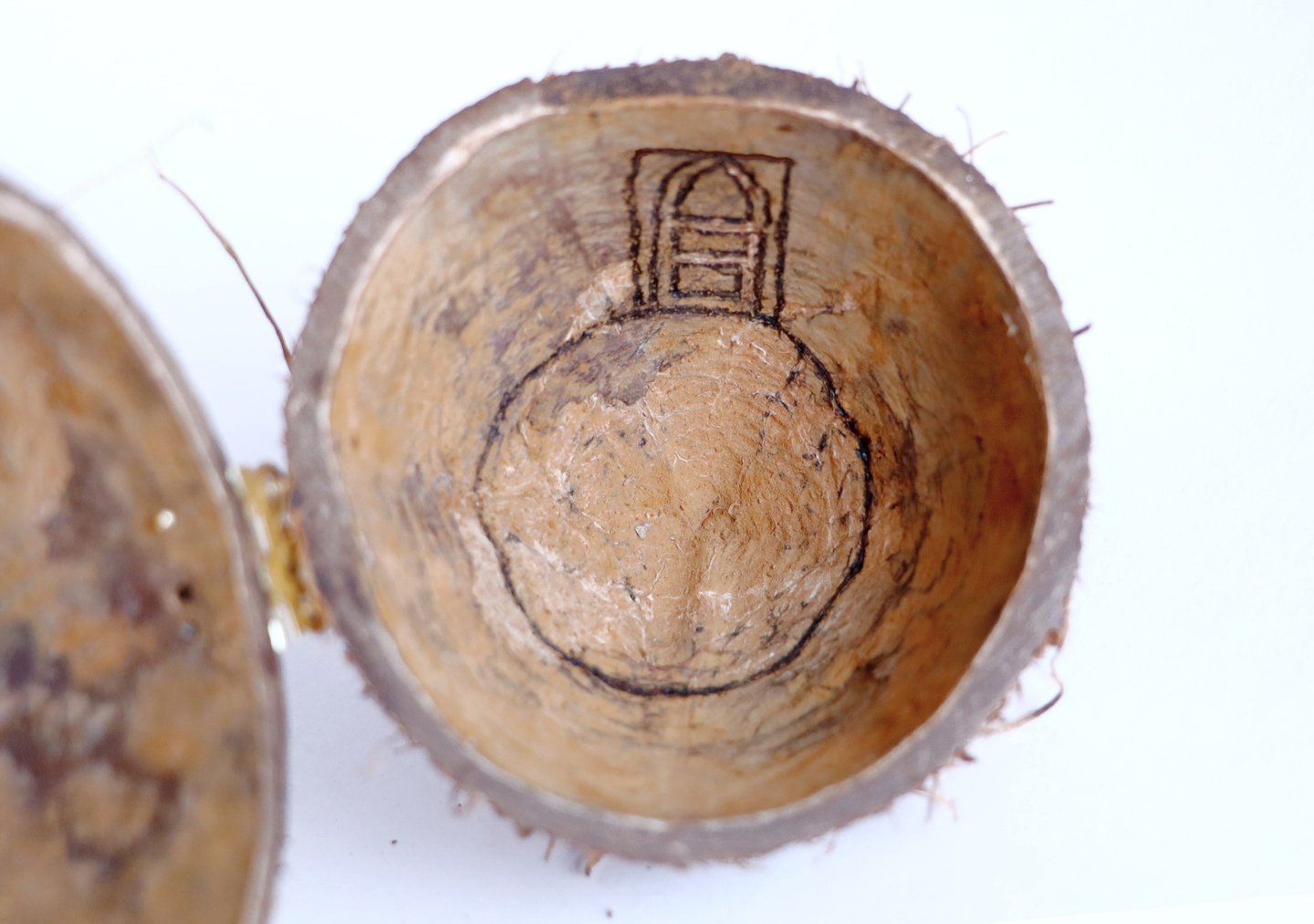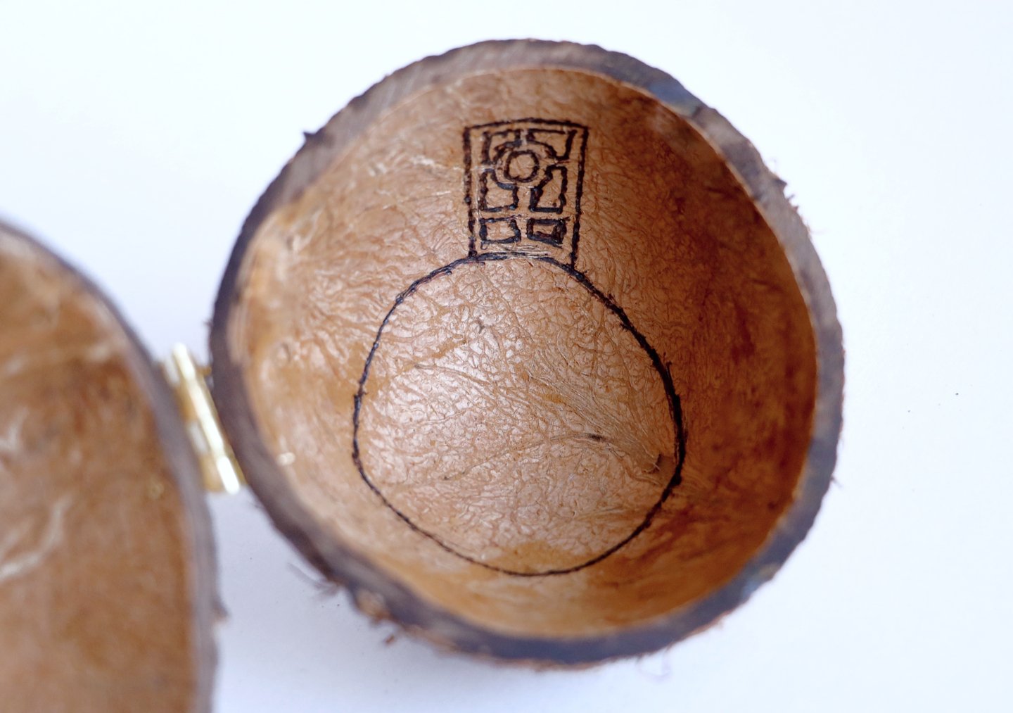 На питьевом кокосе было написано: «Открывать здесь». Вот только где это — здесь? Замешательство заставляет задуматься, действительно ли существует конкретное место, которое нужно открыть. Чтобы решить все вопросы, я решила, что нам просто нужна дверь. Внутри кокоса, да.