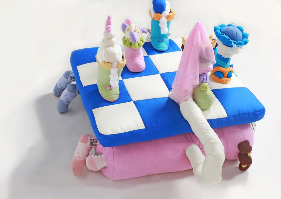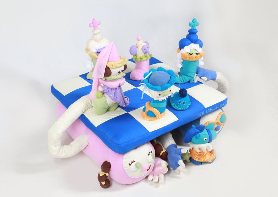 Текстильная скульптура «Шахматариум» — это место воплощения детских рассуждений и воображения с помощью шахматных фигур.