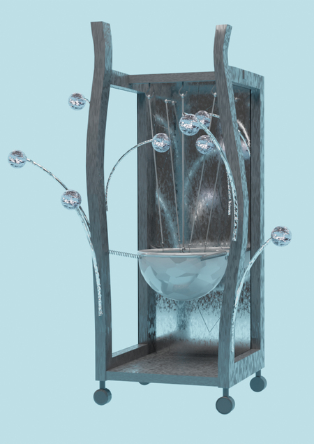 В качестве идейной основы выступила сказка про молодильные яблоки и живую воду. Так, внутри чаши находится вода, а струны инструмента «оживляются» за счет яблок-электросмычков.