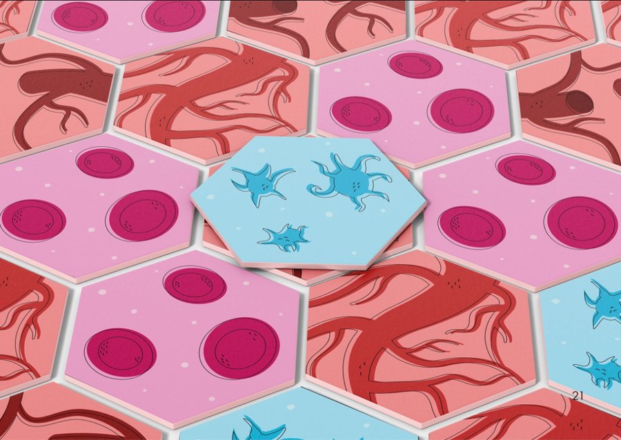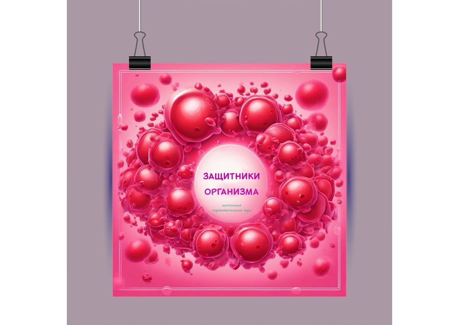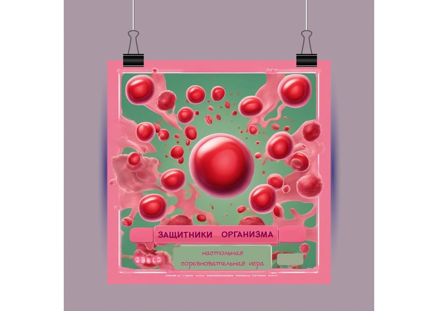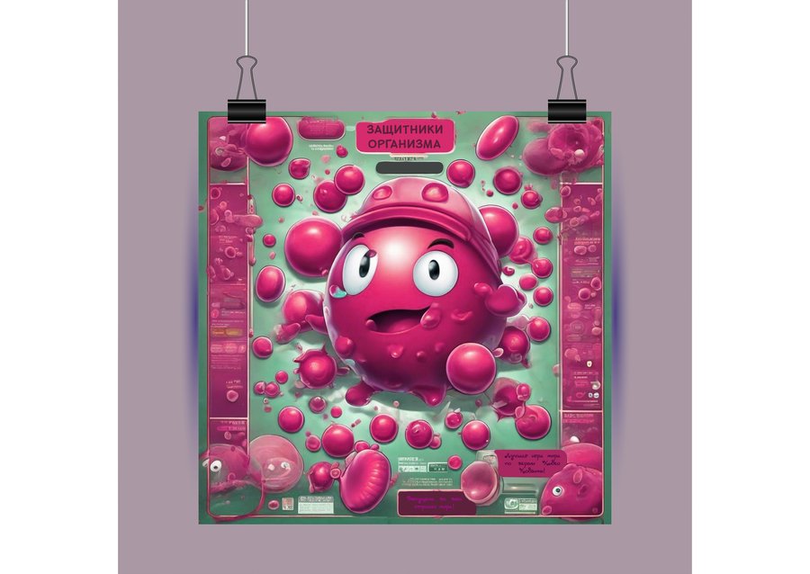 Для изображения промо-материалов я использовала Stable Diffusion XL. Промт: the advertising poster of the game, which depicts red blood cells, platelets and leukocytes on a pink background Никаких фильтров использовано не было. Однако был использован Adobe Photoshop для корректировки и Adobe Illustrator, чтобы вставить картинки в мокап.