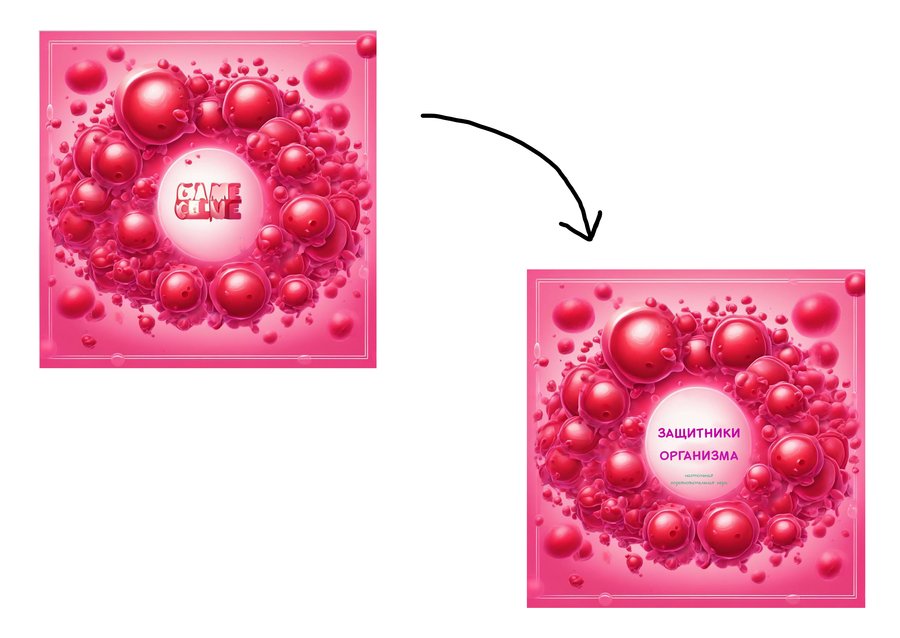 Тут также были слова на сгенерированном изображении, поэтому я снова использовала Adobe Photoshop, чтобы подправить картинку и вписать название своей игры.