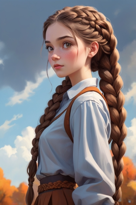 Лиза была высокой и стройной девушкой с длинными каштановыми волосами, которые она всегда заплетала в толстую косу. Её глаза, серые, как осеннее небо, казалось, всегда были немного задумчивыми, словно она постоянно о чём-то размышляла. Лиза любила простую одежду: длинные юбки, свободные блузы и тёплые шали, которые сама вязала по вечерам. Её руки, тонкие и изящные, всегда были в движении: то перебирали струны цитры, то гладили кошку, то перелистывали страницы старых книг.