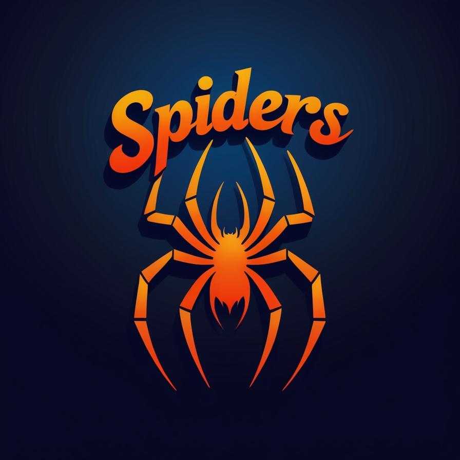promt: logo of the horror restaurant spider with the text «SPIDERS» blue palette letters bright orange. horror restaurant with spiders.