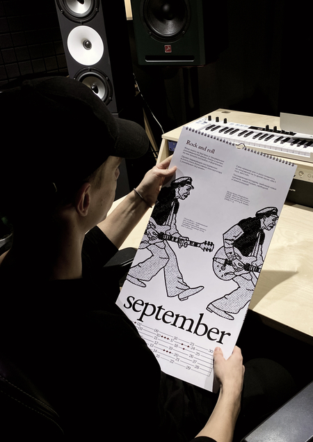 Календарь раскрывает тему рока и его поджанров. Он создан специально для студии звукозаписи Subbox Records и в нем можно увидеть не только факты о самом поджанре рока, но и о популярных группах того времени, которые развивались и создавали музыку в этом направлении.