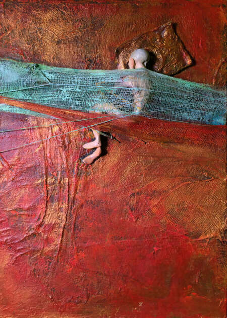 Оргалит, марля, акрил, масло, полимерная глина, нитки, клей 50 × 65 см 2012
